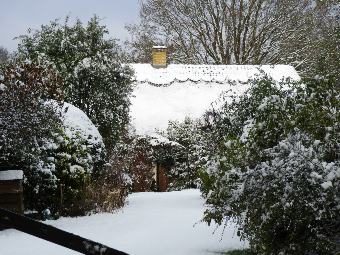 Old Thatch in the snow by Christine Strudwick